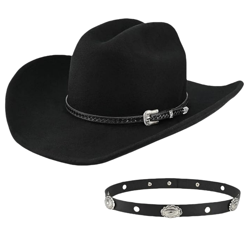 100% Wool Western Cowboy Hat for Men Women Classic Fedora Hat Felt Cowgirls Hats with Two Decorative Bands