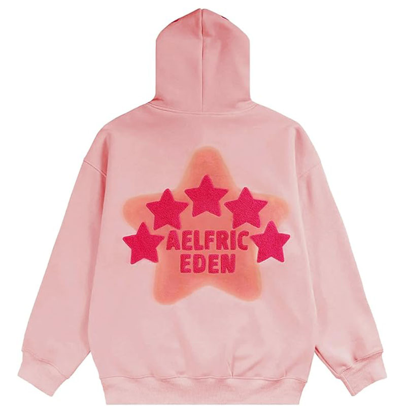 Women's Pink Star Print Graphic Hoodie - Unisex Oversized Long - Sleeve Pullover with Pocket